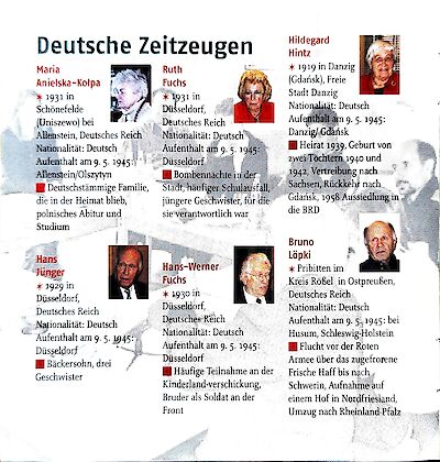 Uczestnicy z Niemiec spotkali się w Düsseldorfie z pięcioma współczesnymi świadkami. Trzech uczestników opowiedziało o swoich wspomnieniach z bombardowań Düsseldorfu. Dwóch spośród współczesnych świadków pochodziło z Prus Wschodnich i opowiedziało o ucieczce, wypędzeniu i przesiedleniu.